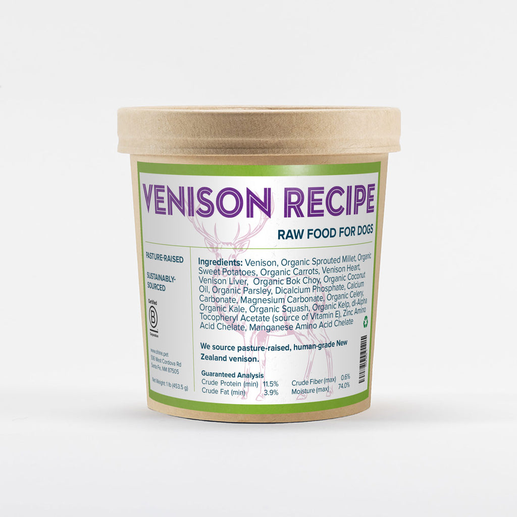 Venison, Organic Sprouted Millet, Organic Sweet Potatoes, Organic Carrots, Venison Heart, Venison Liver, Organic Bok Choy, Organic Coconut Oil, Organic Parsley, Dicalcium Phosphate, Calcium Magnesium Carbonate, Organic Celery, Organic Kale, Organic Squash, Organic Kelp, Vitamin E, Zinc Chelate, Manganese Chelate